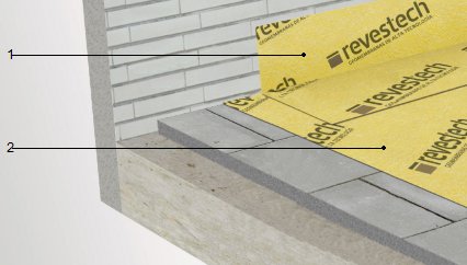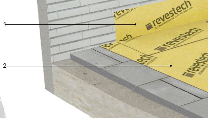| Trobada de coberta plana transitable, ventilada amb parament vertical. Impermeabilització amb làmines de poliolefines | ||